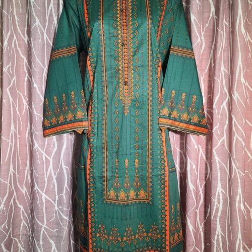 BIN SAEED- 3PCS SUIT LAWN PRINTED & EMBROIDERED w/ SILK DUPATTA (GREEN/ORANGE)
